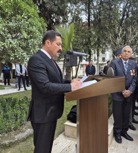 Hatay Valisi Mustafa MASATLI, “18 Mart Çanakkale Zaferi ve Şehitleri Anma Günü” münasebetiyle düzenlenen anma programına katıldı. Antakya Şehitliği’ndeki Atatürk Anıtı’na çelenklerin sunulmasıyla başlayan programa; İl Protokolü, Aziz Şehitlerin Kıymetli Aileleri, Kahraman Gaziler ile birlikte çok sayıda vatandaş da katıldı.